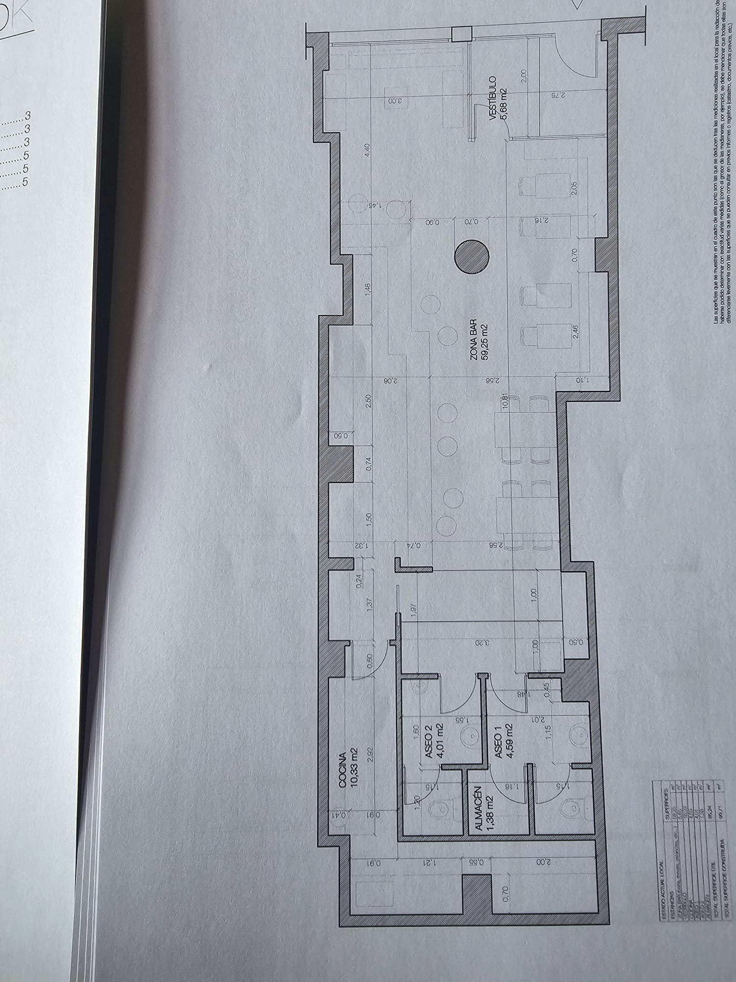 Dispone de una amplia barra y mesas, creando un espacio cómodo y acogedor para los clientes, aseos y almacén.