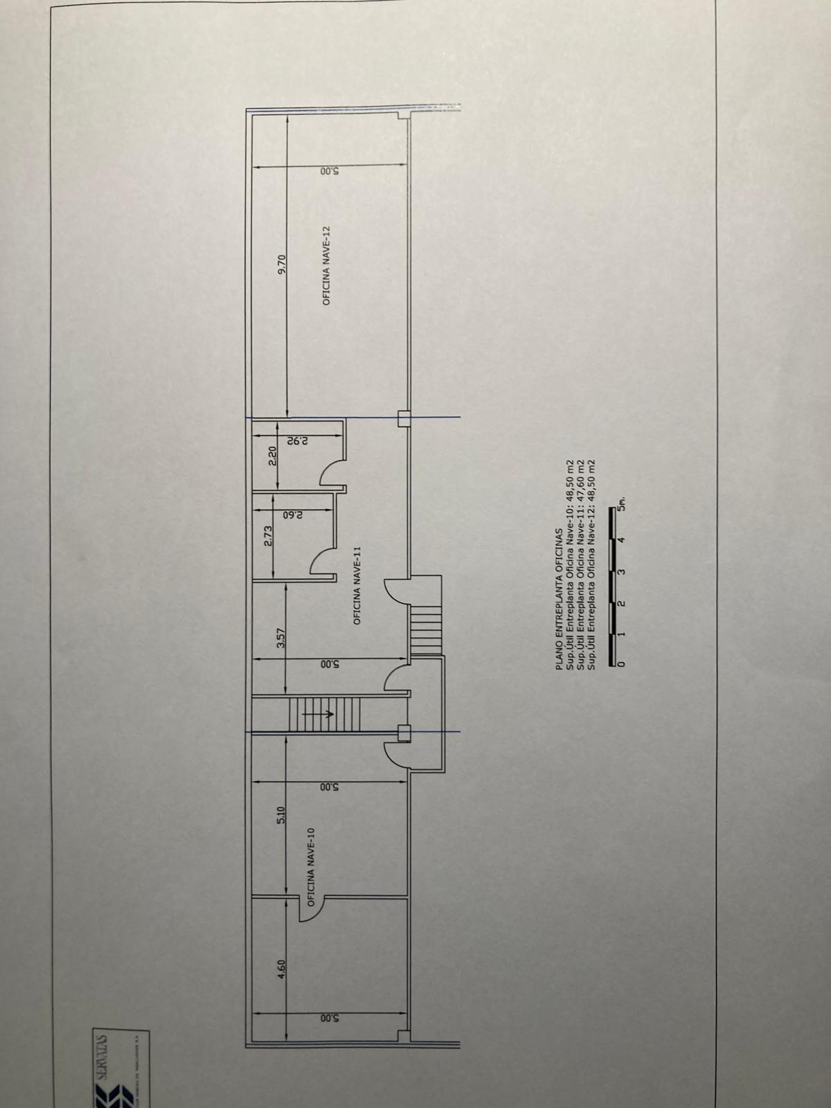 Entreplantas con amplias oficinas, vestuarios, dos aseos, y comedor. La planta baja dispone también de vestuarios y aseos. Oficinas con amplios ventanales exteriores.