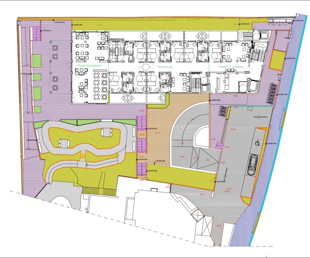 El proyecto contempla la implantación de un nuevo centro residencial para personas mayores en la calle Intxaurrondo nº 38 de Donostia–San Sebastián, en una parcela situada entre la propia calle Intxaurrondo y el Paseo de Txaparrene, en un entorno urbano consolidado y bien comunicado. La actuación se desarrolla sobre un ámbito con una marcada pendiente topográfica, condicionante que ha sido determinante en la configuración volumétrica y funcional del edificio.