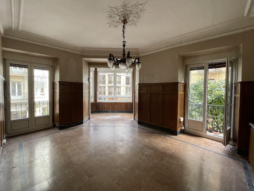 La actuación se desarrolla íntegramente en el interior de la vivienda, sin afección a la estructura portante ni a la envolvente del edificio, respetando su grado de protección patrimonial y manteniendo los elementos arquitectónicos originales. La intervención parte de un estado inicial con distribución obsoleta y materiales e instalaciones de origen, planteando una reorganización completa de los espacios interiores.