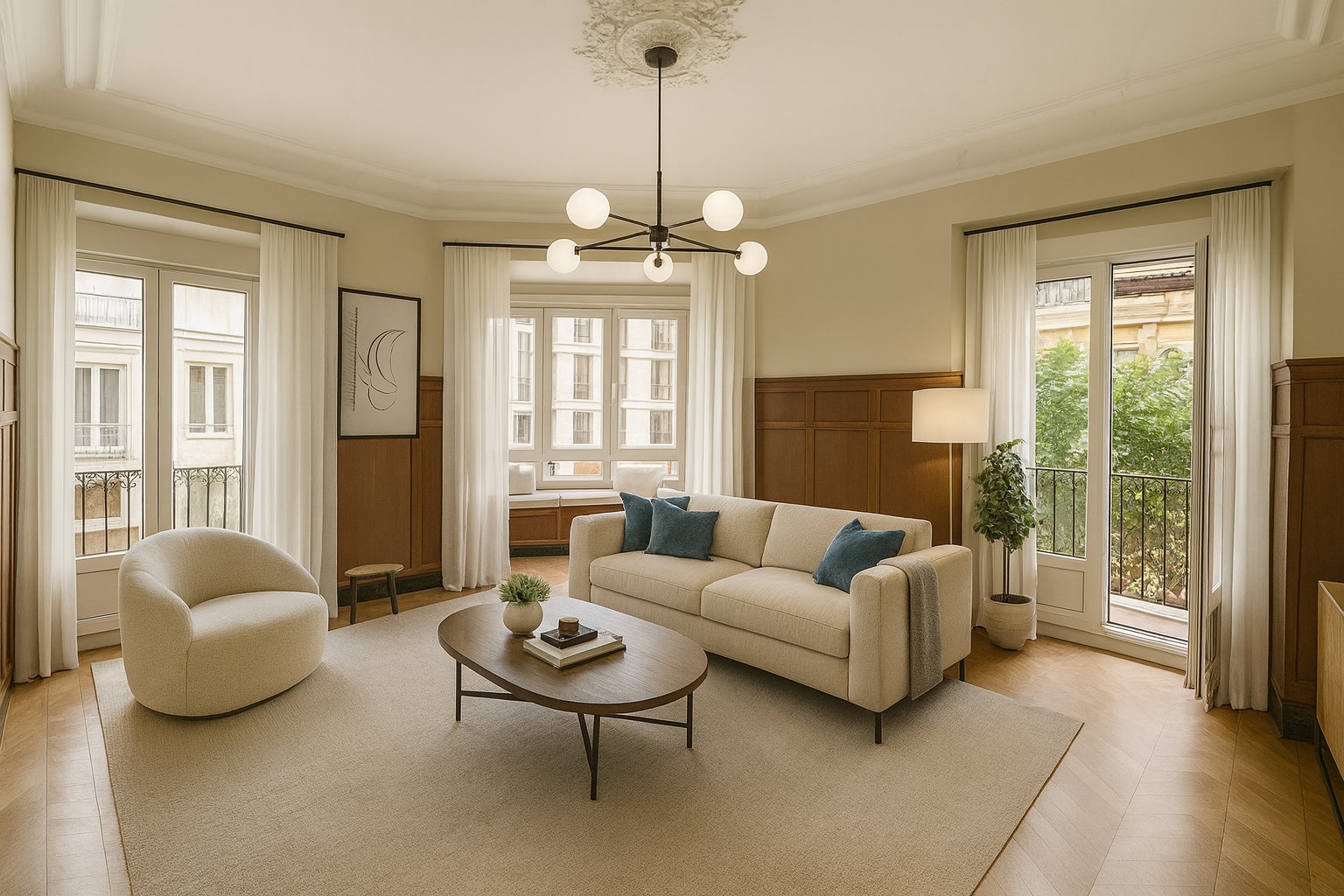 El resultado es la transformación de una vivienda de gran superficie en dos viviendas contemporáneas, eficientes y normativamente conformes, integradas en un edificio protegido y adaptadas a las necesidades residenciales actuales, sin alterar la identidad arquitectónica del conjunto.